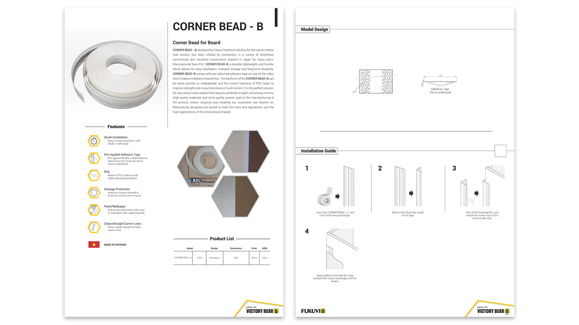 Nẹp góc tường Corner Bead B Fukuvi chính hãng là phụ kiện chuyên dụng dùng để gia cố và hoàn thiện các góc tường thạch cao, được sản xuất bởi Fukuvi Chemical Industry.